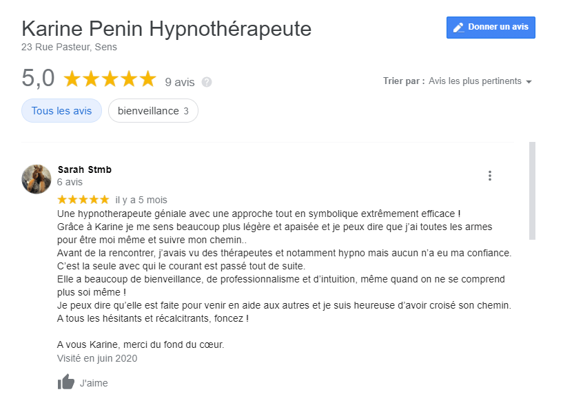 Sarah SUR GOOGLE 13 janvier 2021 karinepeninhypnose Commentaires fermés sur Sarah SUR GOOGLE Similaire